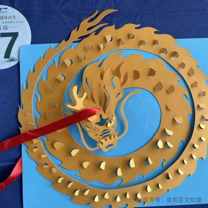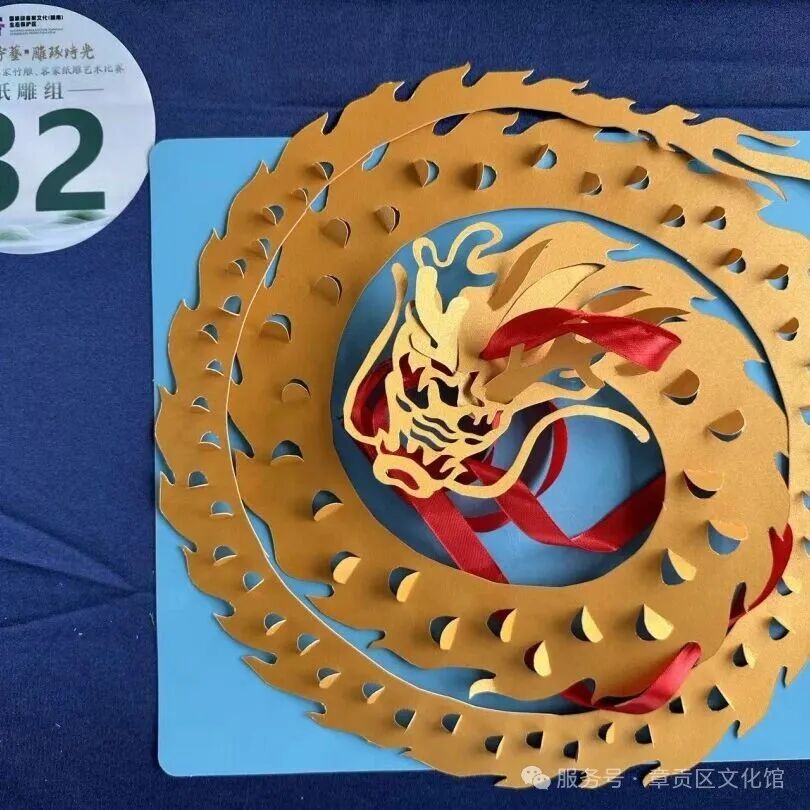 本次大赛分设竹雕组与纸雕组两大竞赛单元。竹雕组选手以客家文化生态保护区标识图为创作主题,通过不同的雕刻技法,展现了对客家文化的深刻理解;纸雕组则以中华传统“金龙”图案为命题,考验选手对复杂图案的把握能力和精细处理技巧。