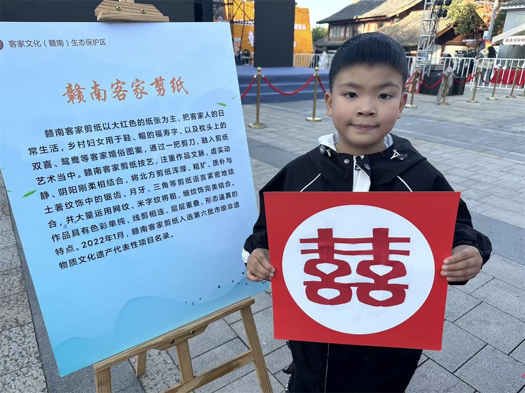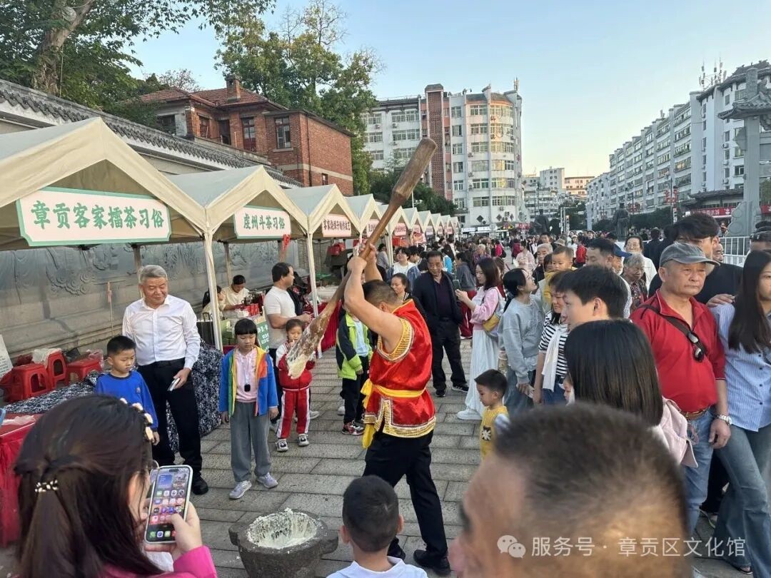 非遗集市集结了19个特色项目,成为活动的焦点。从赣南嗦粉到客家糯米粑,从爆浆豆腐到薯包米粿,地道小吃让人回味无穷;瓷画像、竹雕等手工艺品同样引人驻足。