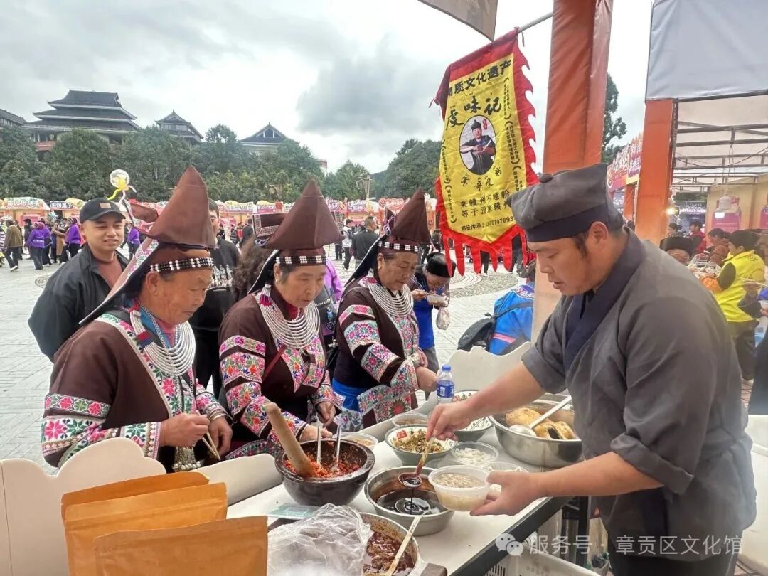 近日,章贡区市级非物质文化遗产项目赣南嗦粉制作技艺亮相中国?雷山苗年暨非物质文化遗产展示活动,受到当地群众与游客的欢迎。