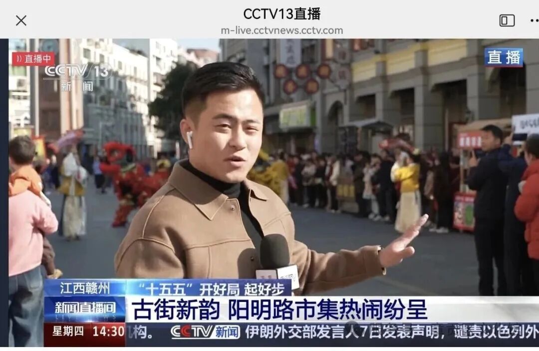 当日下午,赣南客家剪纸、赣南嗦粉制作技艺、章贡客家擂茶习俗、赣州金钱鱼饼制作技艺、客家春节拜年踩街、艾米粿制作技艺6个章贡非遗代表性项目,登上中央广播电视总台新闻频道《新闻直播间》。镜头聚焦赣州章贡阳明路,总台记者亲身感受客家剪纸、擂茶、嗦粉的魅力。伴随着锣鼓声声,醒狮腾跃、“媒婆”欢舞、鲤鱼灯穿梭,一场生动的客家民俗踩街将“江南宋城 福寿章贡”的鲜活图景传递给全国观众。截至今日,视频播放量达近百万。