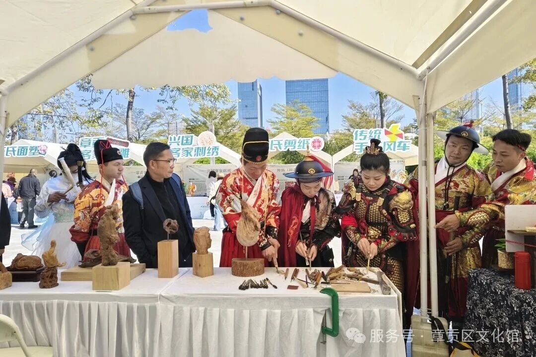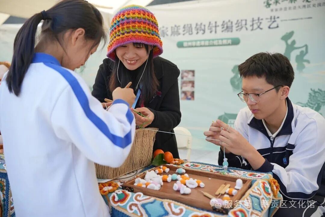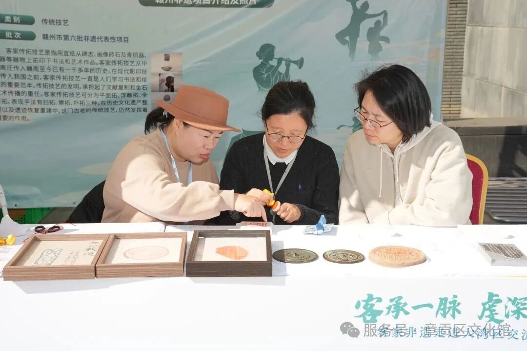 同日,“客承一脉 虔深共展”客家非遗走进大湾区交流活动在深圳图书馆启动。章贡客家竹雕、章贡客家根雕、客家麻绳钩针编织技艺、客家传拓技艺、章贡客家擂茶习俗、客家草本发酵合香制作技艺6个章贡非遗代表性项目现场展示。深圳市民在代表性传承人指导下,感受雕刻、拓印、编织、擂茶、制香技艺,零距离体验客家美学与宋城雅韵,完成了一次从“观看”到“体验”的深度文化对话。